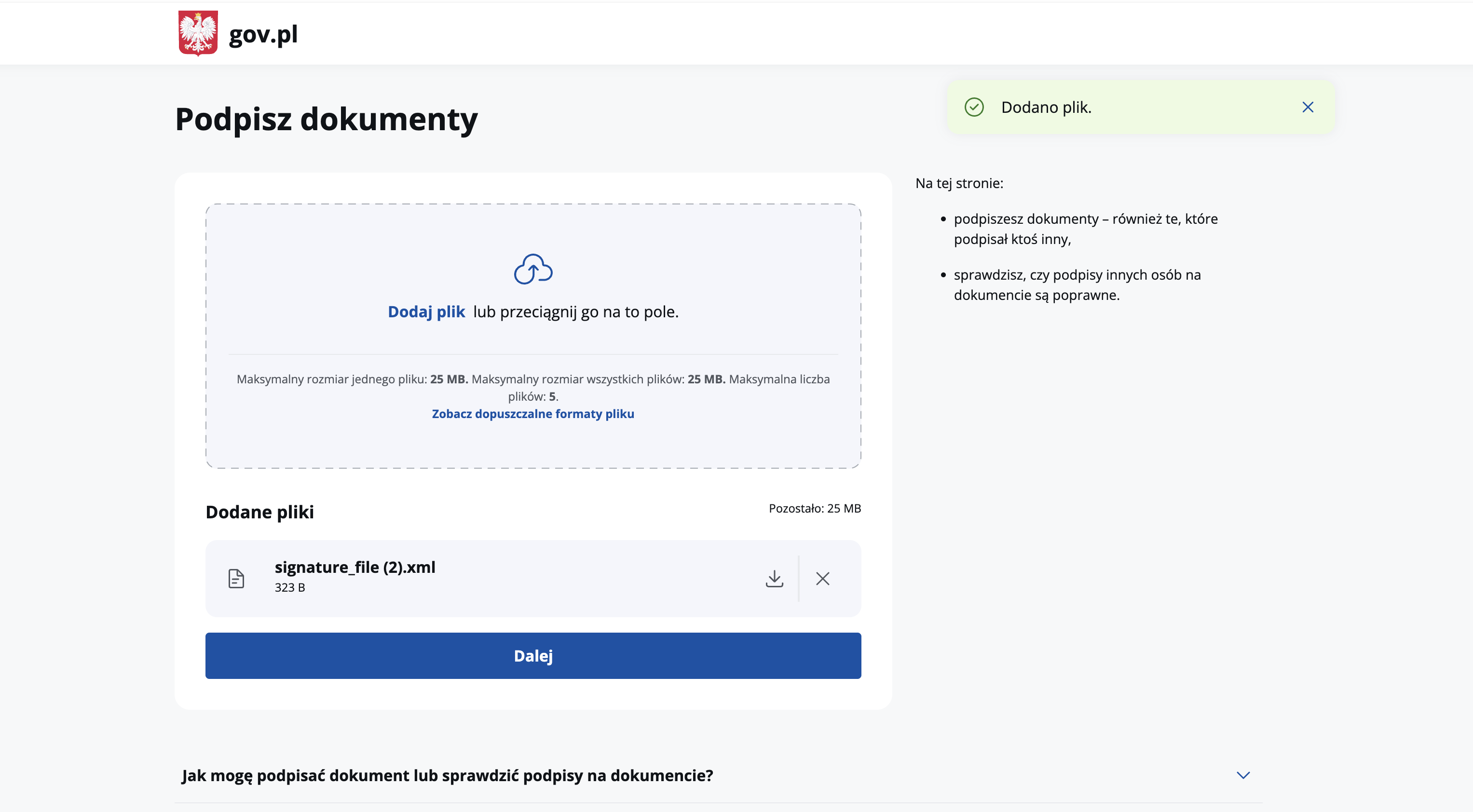 5. Open the podpis.gov.pl page to digitally sign documents