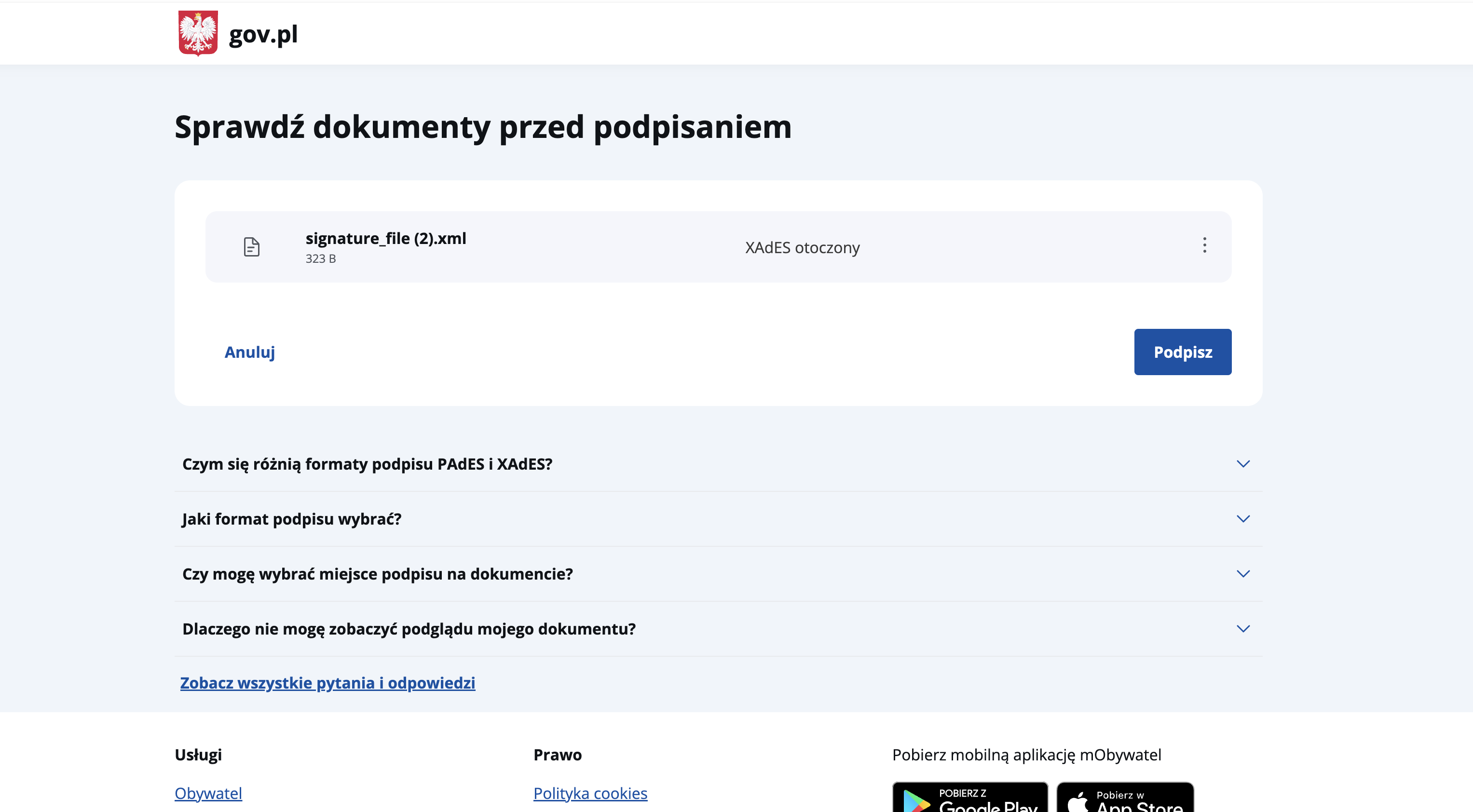 8. Review the file and click Podpisz (Sign) to start the signature process.