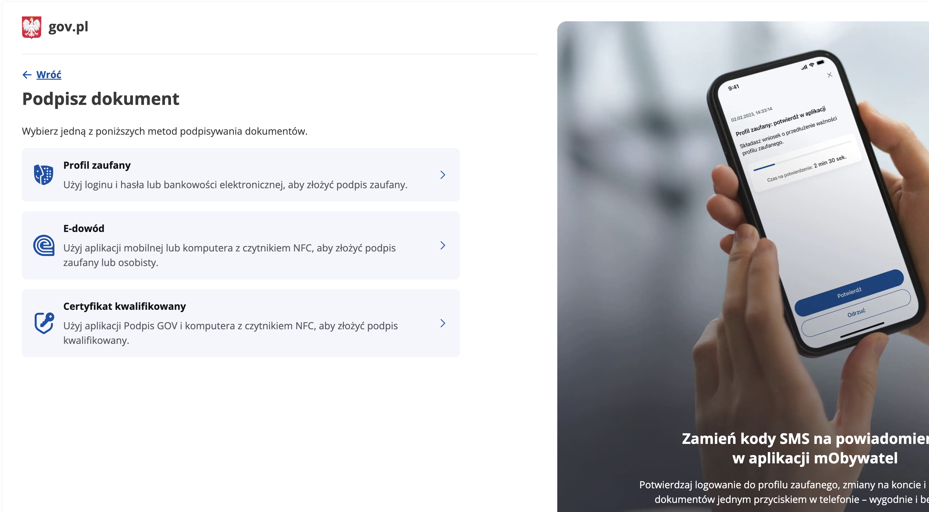 9. Choose your signing method (most commonly Trusted Profile / Profil zaufany) and complete authorization